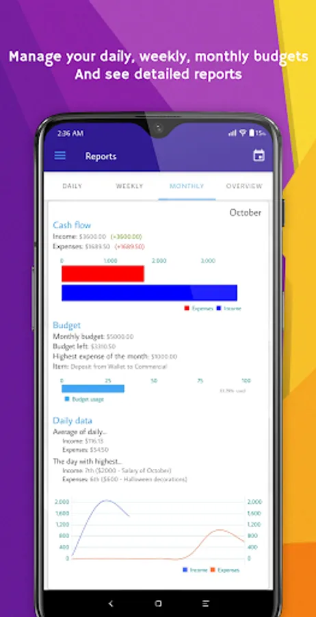 You can access Daily, Weekly and Monthly reports containing the following information:
