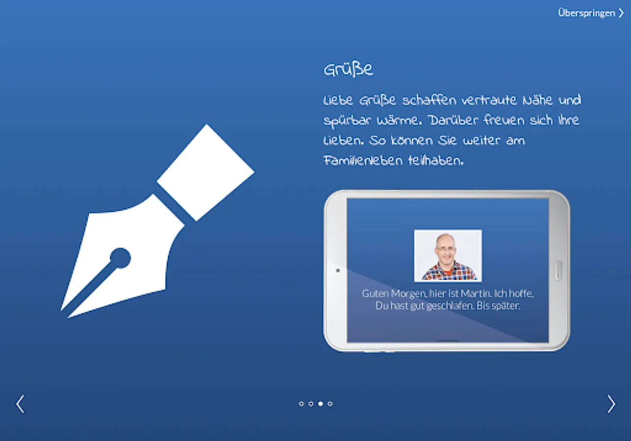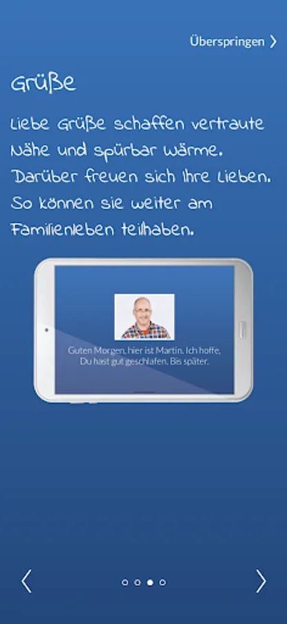 To alleviate this loneliness, we have developed "Tante Laura": a digital visitor bridge with which you can send greetings, beautiful photos / videos or your favorite music to your loved ones.