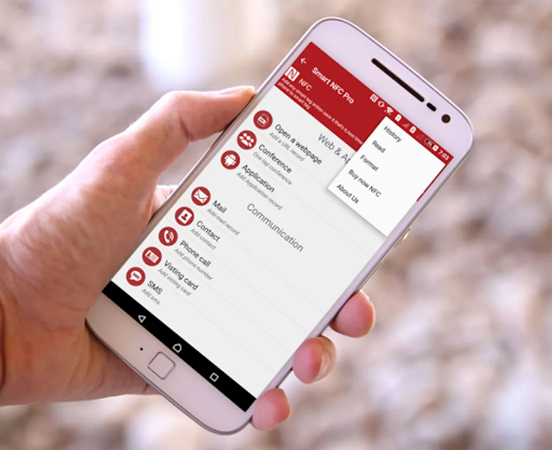 Smart NFC Pro is ad-free version of "smart NFC" free app - The fully loaded, easiest and best NFC app to automate tasks using NFC. Smart NFC has the simplest, easiest and coolest UI and UX that makes all NFC related tasks super easy; be it simple NFC detection, reading and writing NFC tags or automation of your daily tasks or be it advertising and promoting your product using NFC. Smart NFC does it all. Only app to allow you one tap NFC based audio, video conference.