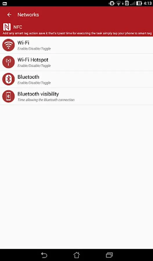 You can also automate your everyday tasks using Smart NFC app and NFC tags.Opening a URL at a tap of phone, changing phone settings as soon as you keep the phone on desk (which had a tags ticked to it), open an app, create tasks, Wi-Fi network management and every other task you perform can be automated using the Smart NFC app.