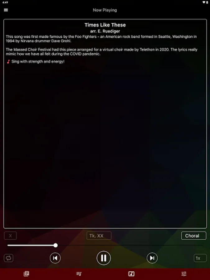 The MCF app helps students learn the songs, and gives teachers interactive tools to help teach their choirs.