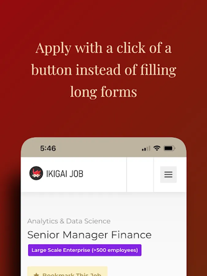 Tired of spending countless hours in filling long applications to apply to different companies? Managing your daily work and finding the time to apply for jobs can be challenging. Ikigai Job is a platform built for curated high-end jobs offering above Rs. 18 Lakh meant for top professionals in their field. Instead of filling long forms, you need to just upload your CV once and you can then apply with a click of a button. Get notified about your shortlists. Register now and apply to jobs for free.