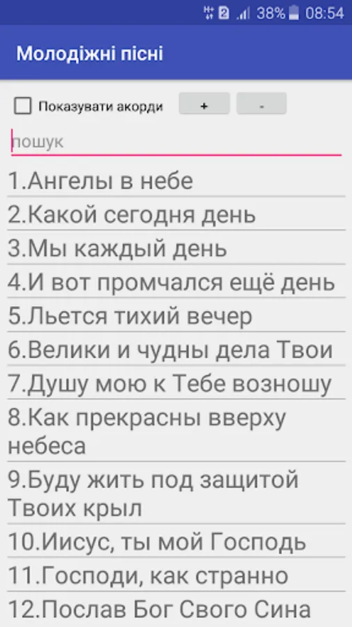 1) Display songs with or without chords;