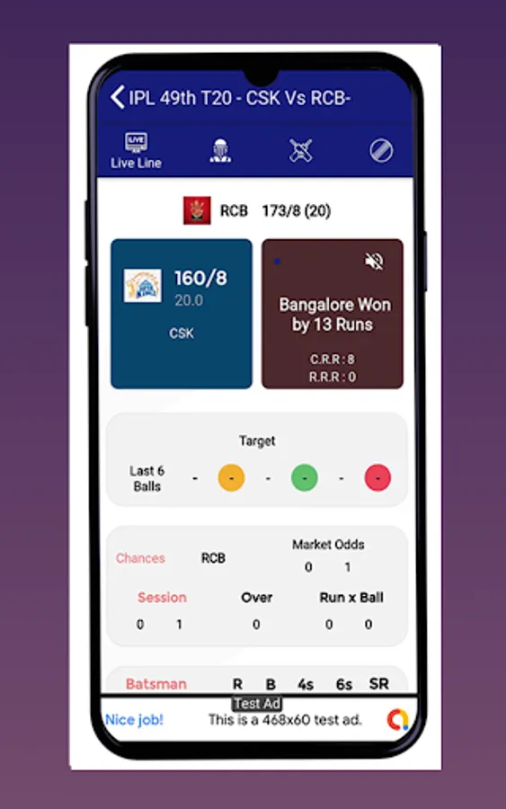 🏆 Catch a detailed live scorecard with the player's run, wicket, four, six, strike rate, and economy. Find accurate ball by ball Odds/ Session with up-down indicator. Crick Score - Fastest Live Line is the fastest live cricket score app.