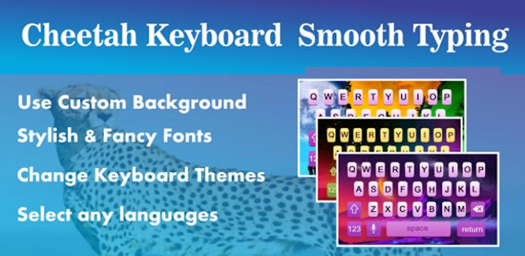 Cheetah keyboard is the most advance and professional keyboard having different fonts and can be easily use in all android devices. So don’t forget to share with friends who always lokking for such type of unique all in one keyboard.