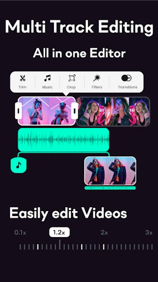 Video Maker and Video Editor is the latest Video Cutter with professional video editing tools to make stylish vlogs with powerful video editing features. The editor provides an of editing tools video and video trim, cut, crop video, photos transition effects, Video Collage Maker, text, merge, emoji, glitch & fast filters, blur background, clip graphics, photo with music & slow motion etc. video maker with a song you can edit videos with filters and share videos any time.