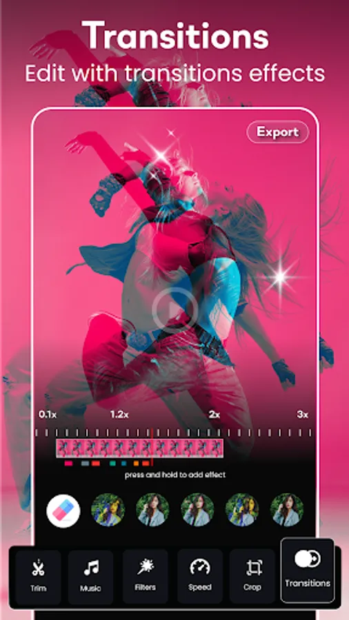 Video Maker Effect is an amazing free editing app for videos and photography. In this editor, you will find filters and video effects to edit videos & pictures with enjoyment. ART Work you create with filters for pictures & effects for videos can be sent to friends or published on other social networks. Edit videos with trendy filters, and effects, including Glitch, Blur, 3D & much