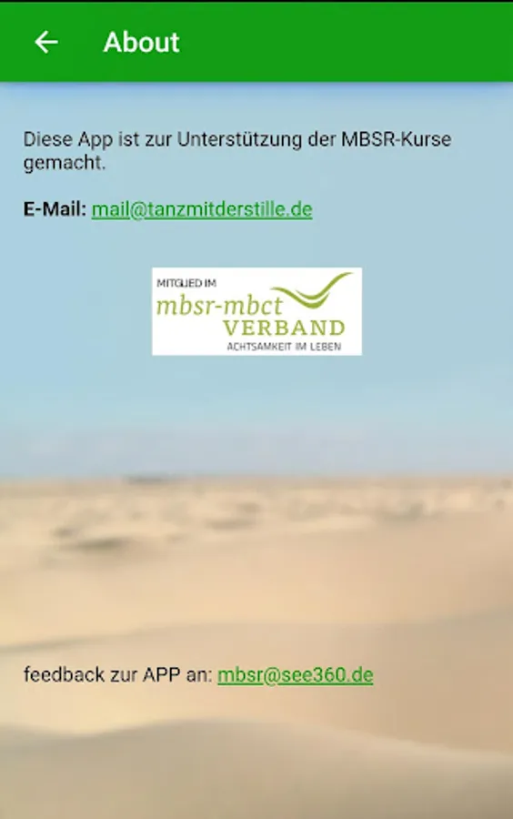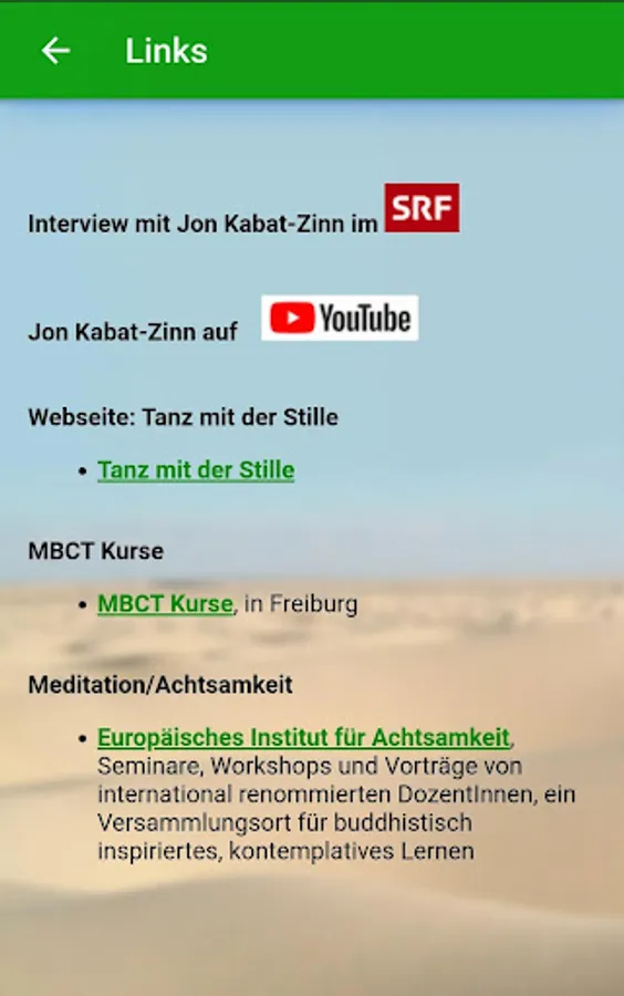 The app "Dance with Silence" includes exercise material to support the MBSR course after Jon Kabat-Zinn.