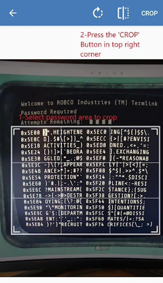 Fallout terminals can be difficult to solve. Terminal Hacker (Camera) makes the task easier by allowing you to use your camera to get the list of passwords.