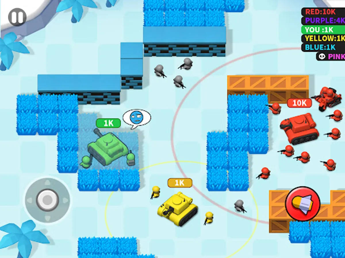 Shut through the shells, avoid the enemy's vision, and become the last player standing.