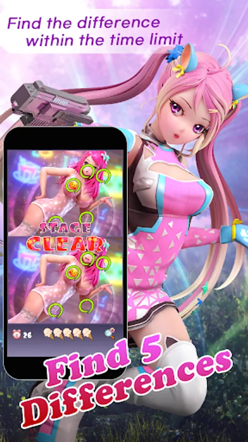 A classic find the differences between 2 pictures, with pretty characters added! Can you truly beat the hard modes to get triple stars?