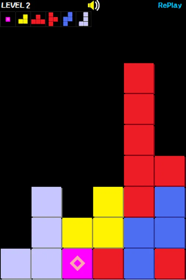 I'm going to erase a block of the same shape as the top of the screen is a small block. I will continue to touch the blocks on the screen. I would erase all clear. Level up to 5. Please come out to the title screen and then touch the "How to play" for more information.