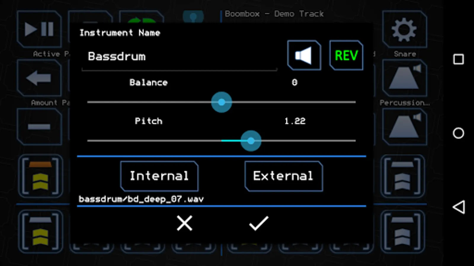 • Change instruments by long clicking