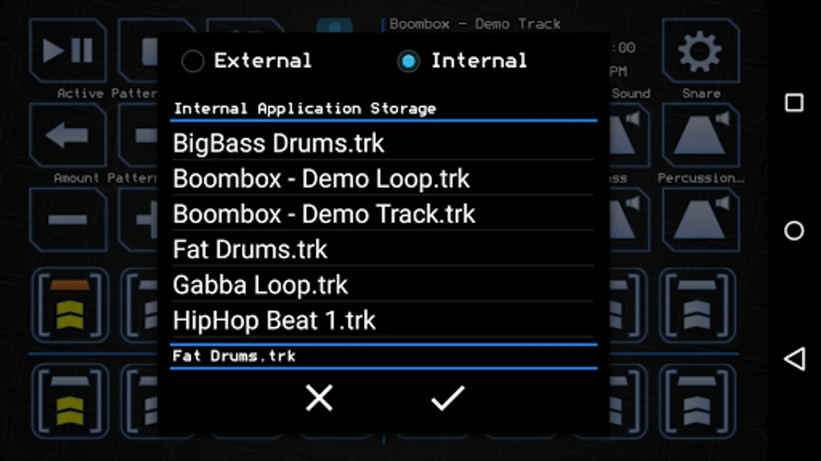 • Switch between track and pattern replay