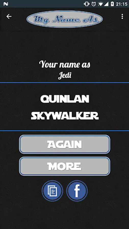 Type in your friends names and tell them what they would be called like as a Jedi!