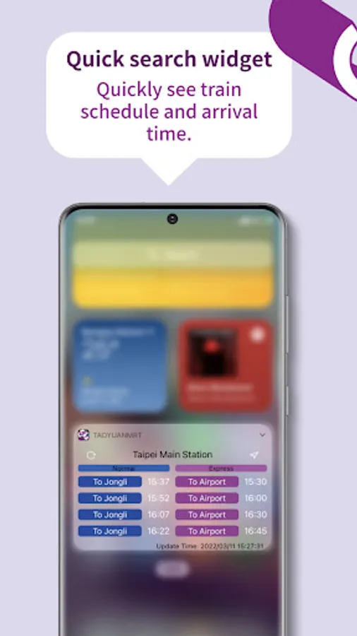 Configure quick lookup stations and quickly see timetable in the widget page. Stop missing trains.