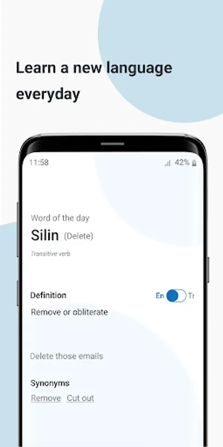 Looking for the best way to passively learn Turkish words? Our new Turkish to English daily Turkish word app is here to help improve your Turkish vocabulary. Boost your Turkish to English comprehension by adding to your Turkish vocabulary and improving your Turkish pronunciation (Turkish accent included 😉). Serving as both a Turkish dictionary 📖 but also an English to Turkish translator 🗣, our goal is to help you translate English to Turkish effortlessly. No need to pay for Turkish lessons as you can start learning Turkish words with one word a day by using this simple Turkish dictionary app.