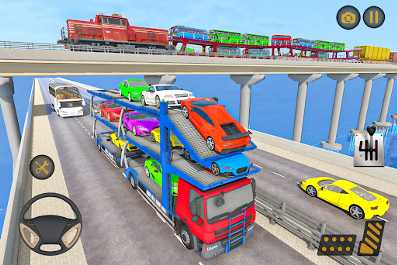 - Multi trucks for vehicle transport purpose in driving truck transport games.