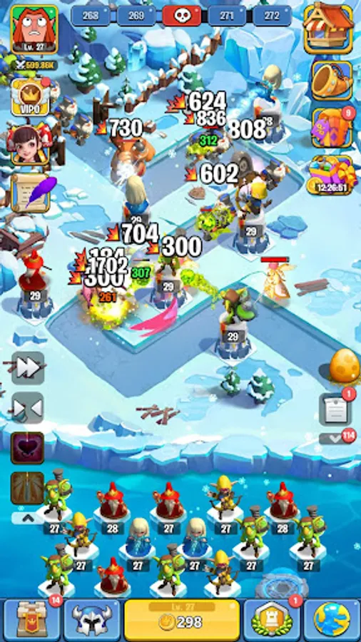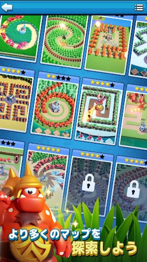 Adopts a novel level-up system, eliminating the usual tedious construction and troop generation tasks. Soldiers move according to the player's orders! Freely combine soldiers of the same level and type to create advanced soldiers!