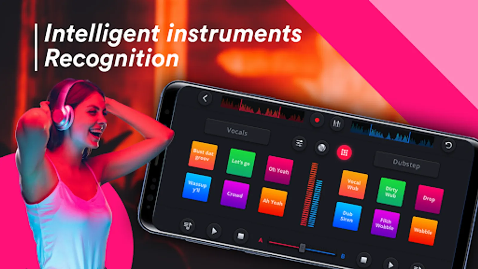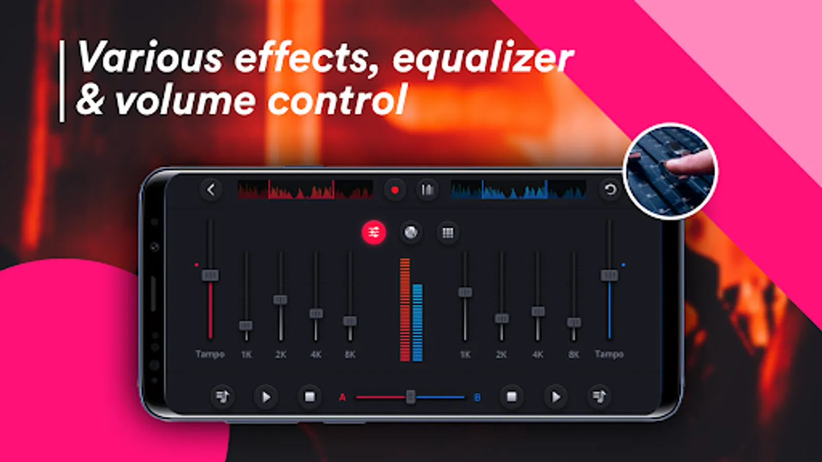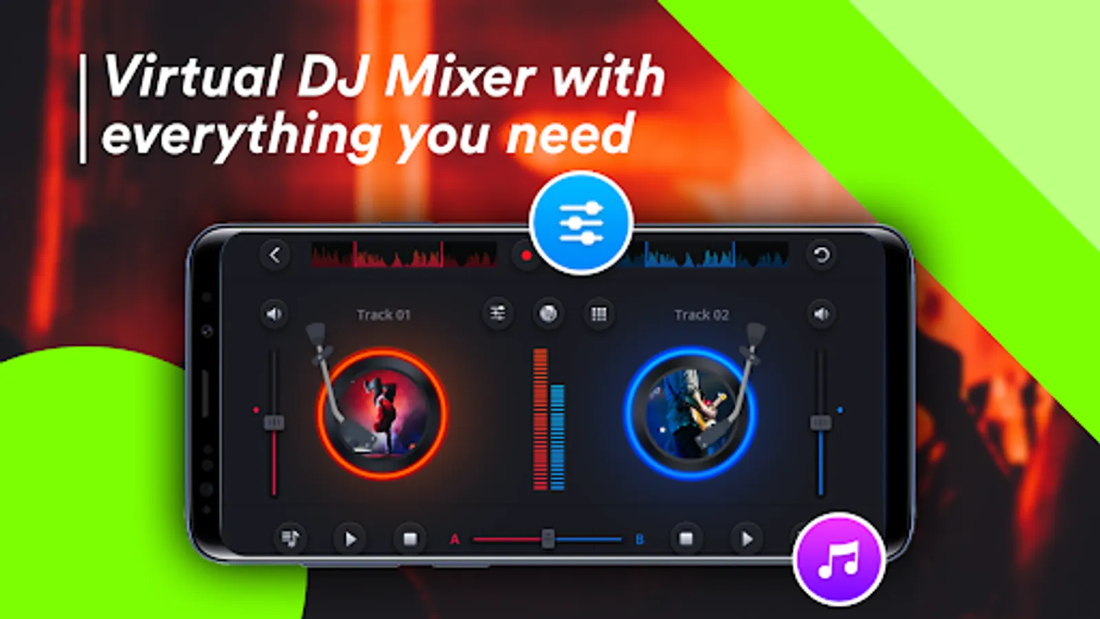 - A DJ mixer that includes sound effects, song remixing, and music-making features