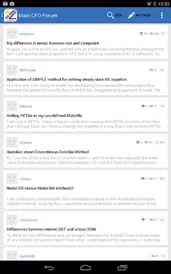 Discussion forum about Computational Fluid Dynamics. Includes sub-forums for several CFD codes, pre-processors and post-processors as well as dedicated forums on topics like mesh generation, visualization and hardware. CFD Online is the largest CFD portal on the net, with 60,000 unique visitors every week, reading more than 450,000 web pages per week. Here is a list of all sub-forums: