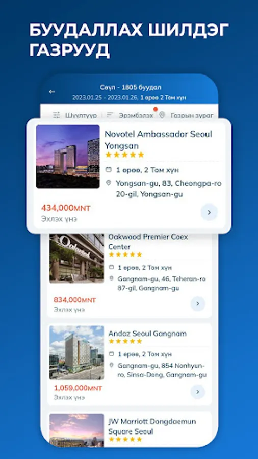 - Олон улсын болон дотоодын 1 сая гаруй зочид буудал