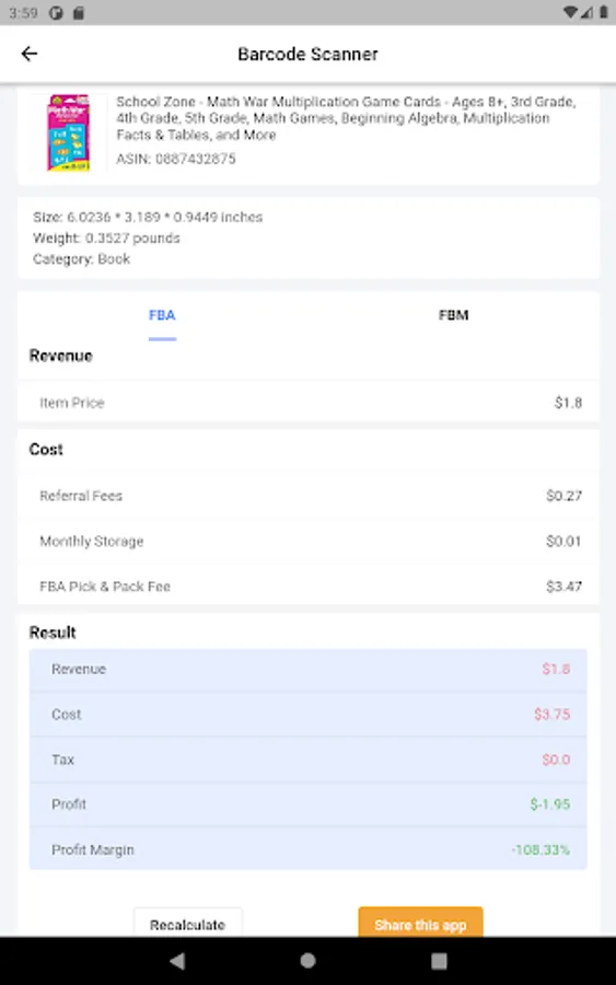 Barcode Scanner is an innovative retail arbitrage calculator that helps sellers with their business to simplify work and maximize profits.