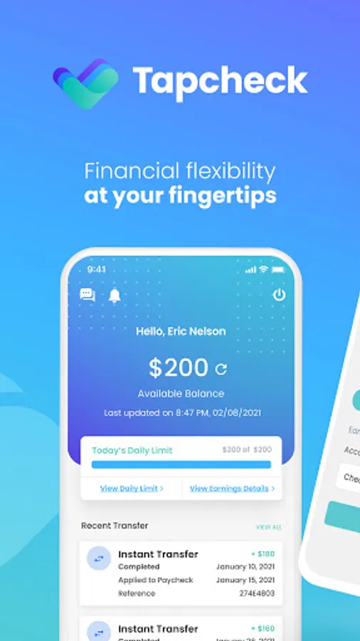 Tapcheck is a digital platform offering an easy and convenient way to access your earnings early. The truth is, sometimes payday doesn’t come soon enough and it can be stressful trying to make ends meet. With Tapcheck’s mobile app, you can schedule transfers before payday to get your money on-demand.