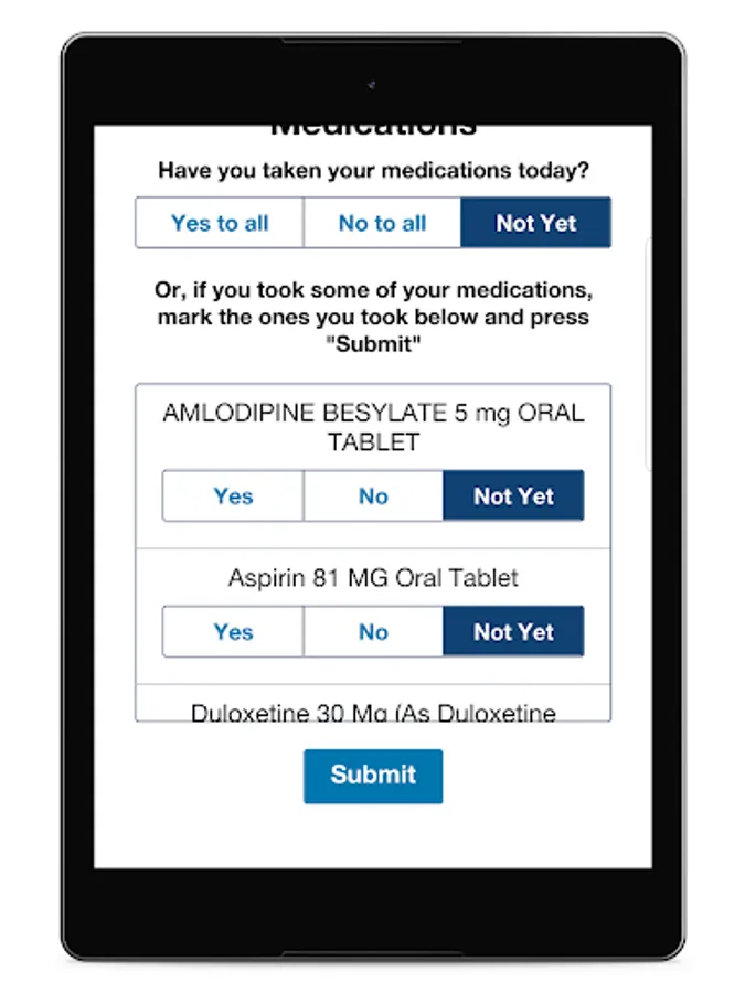 - Medication tracking: receive reminders when it’s time to take a med and track adherence by recording when doses are taken