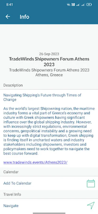 - Information: event description, Add to calendar and location information