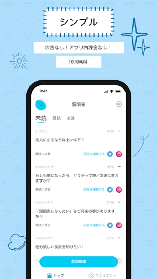 ・ You can anonymously ask questions to your favorite people, or collect and answer various questions from friends and followers.