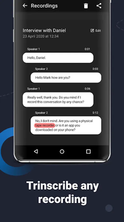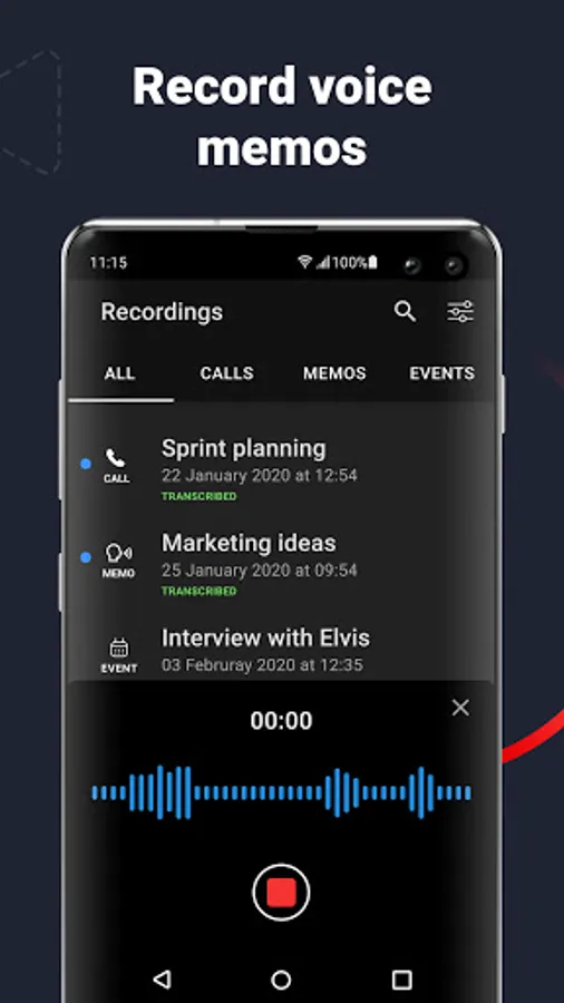 Record incoming and outgoing phone calls in high-quality audio with just a few taps. The call recorder app captures every word and securely stores it on your phone: business calls, interviews, client conversations, or just a daily chat.