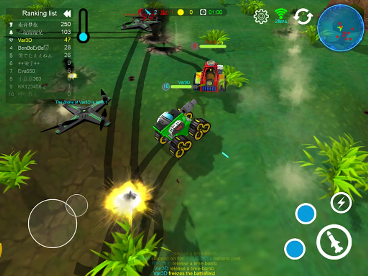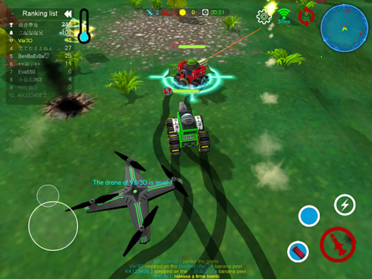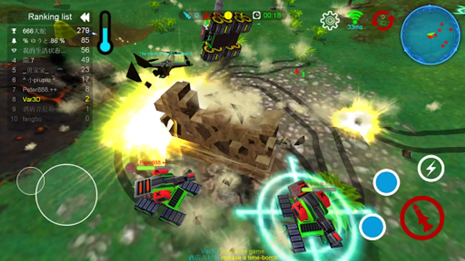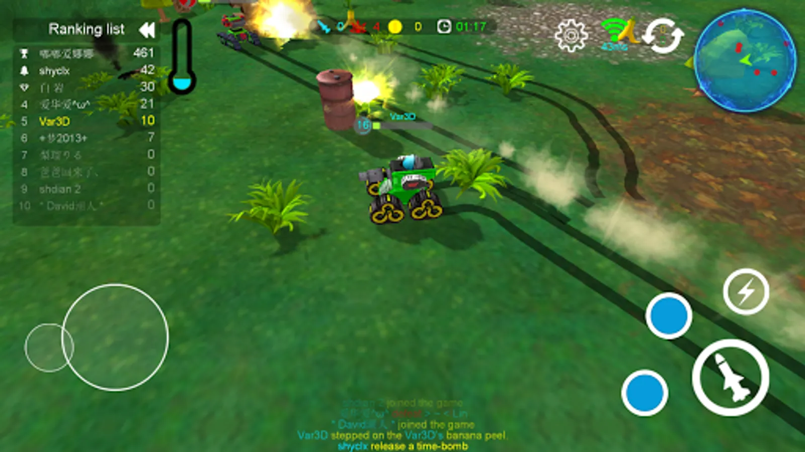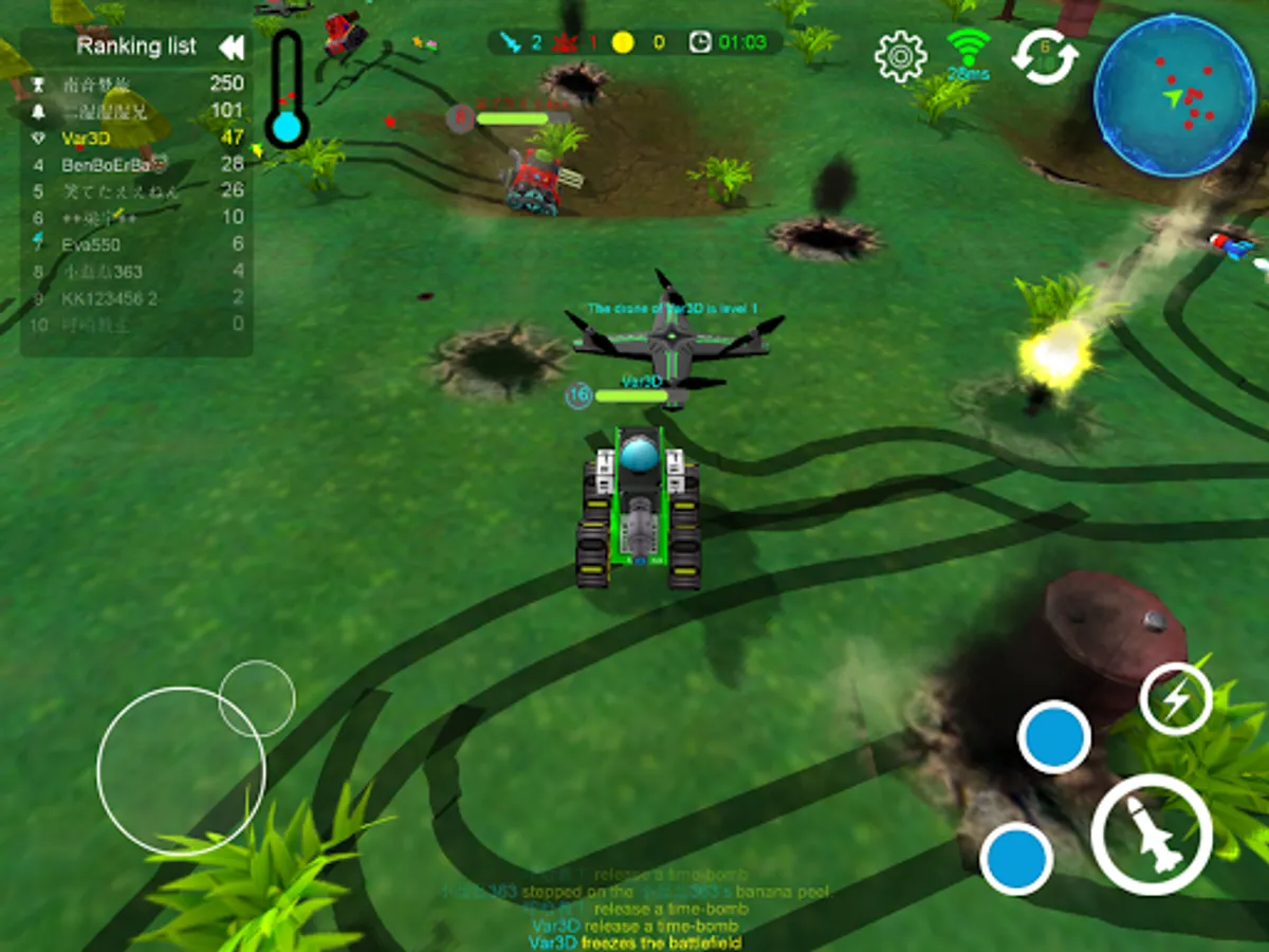 2. Large 3D Map: Randomly generate high and low undulating world maps, not only give you more freedom of handle, but also give you different terrains every times.it will you a new world. 3.Rich Props: The battlefield will randomly appear various props, shields, mines, flying saucers, invisibility cloaks... Try to get them, help you to win the game!