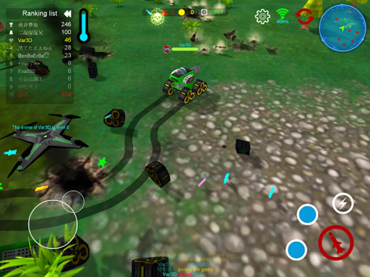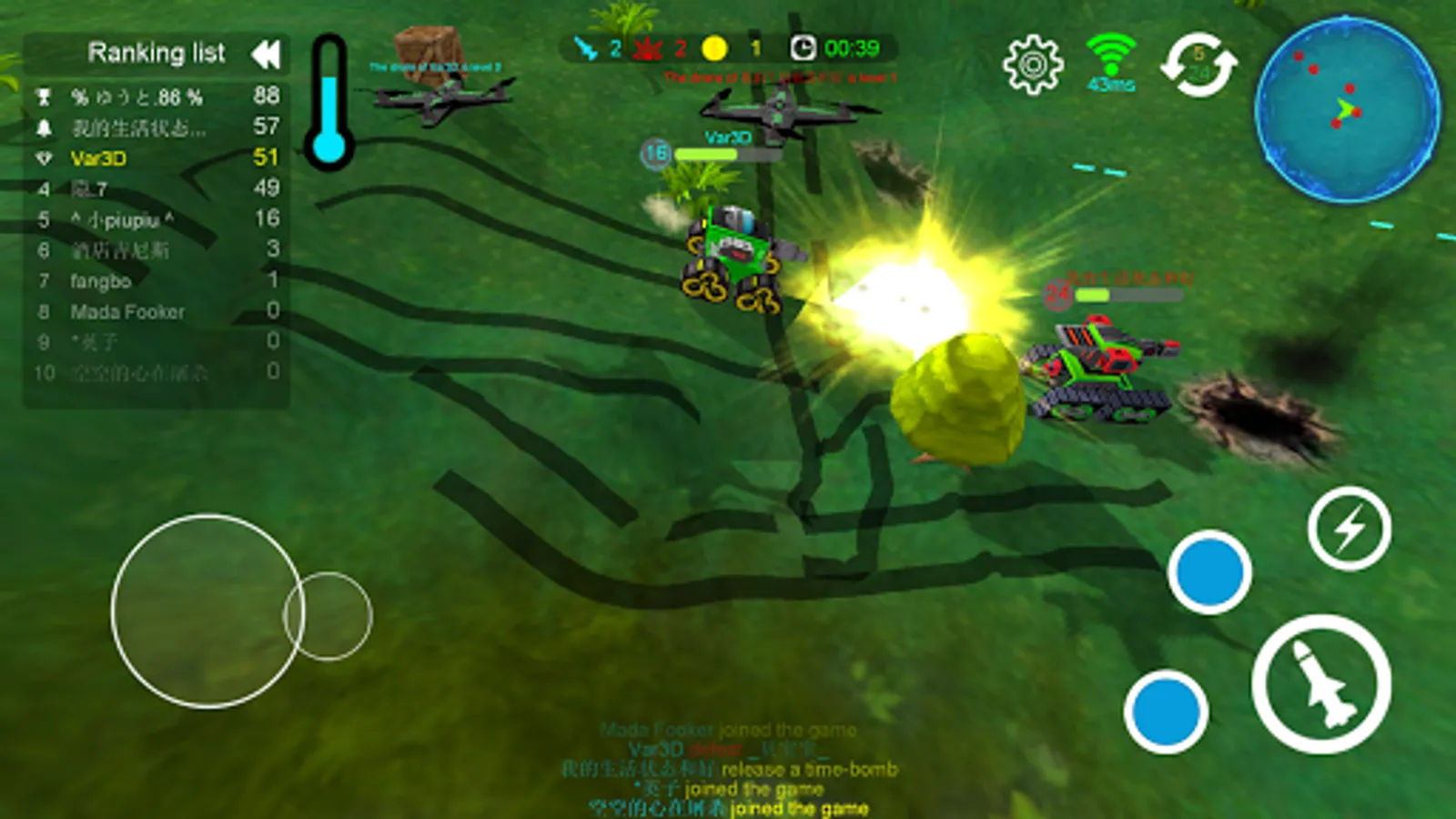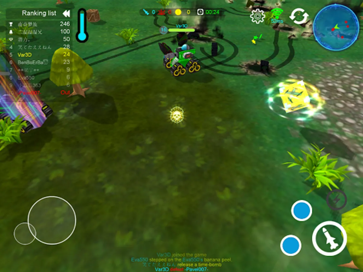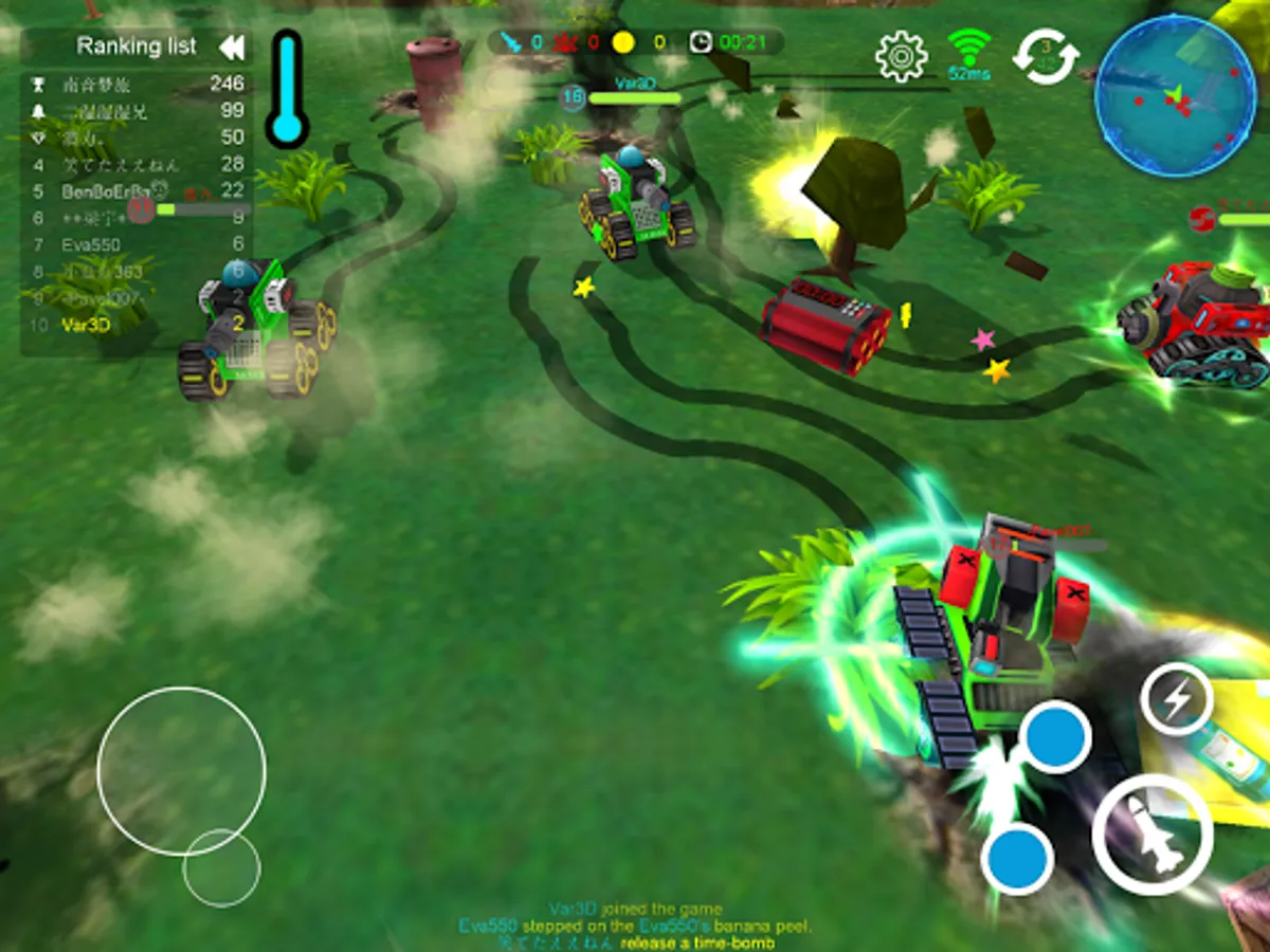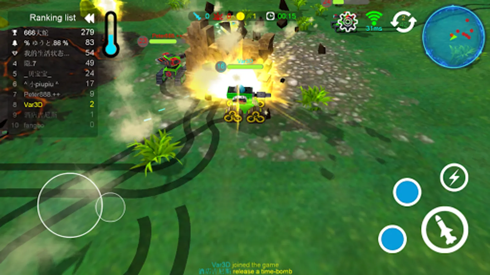 2. Large 3D Map: Randomly generate high and low undulating world maps, not only give you more freedom of handle, but also give you different terrains every times.it will you a new world. 3.Rich Props: The battlefield will randomly appear various props, shields, mines, flying saucers, invisibility cloaks... Try to get them, help you to win the game!