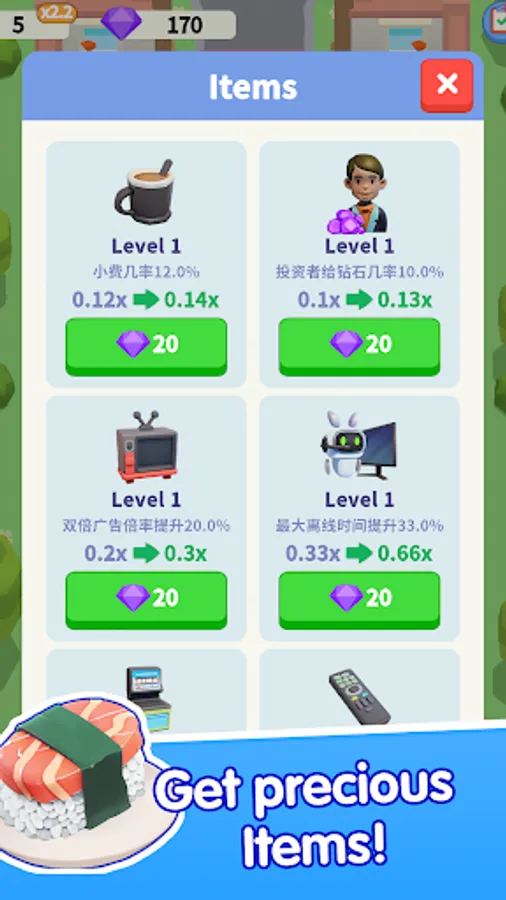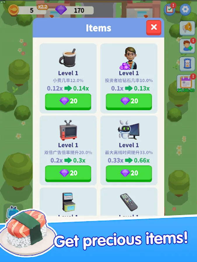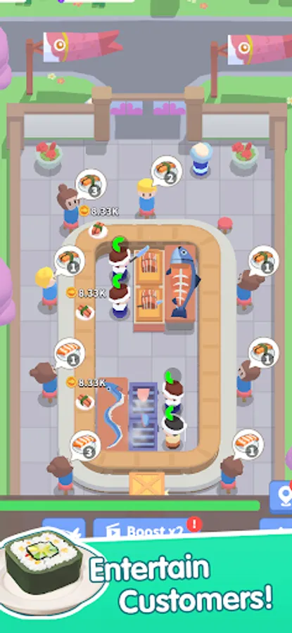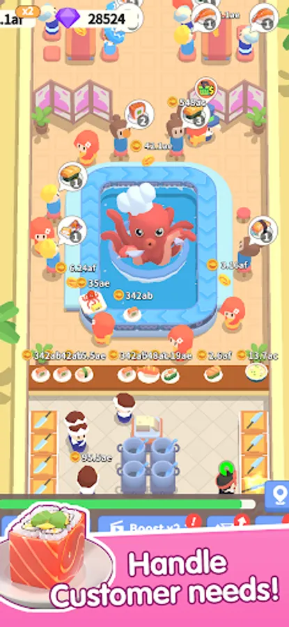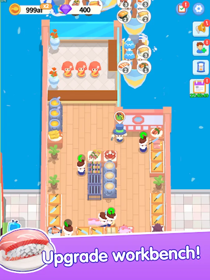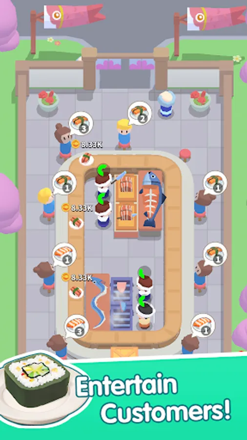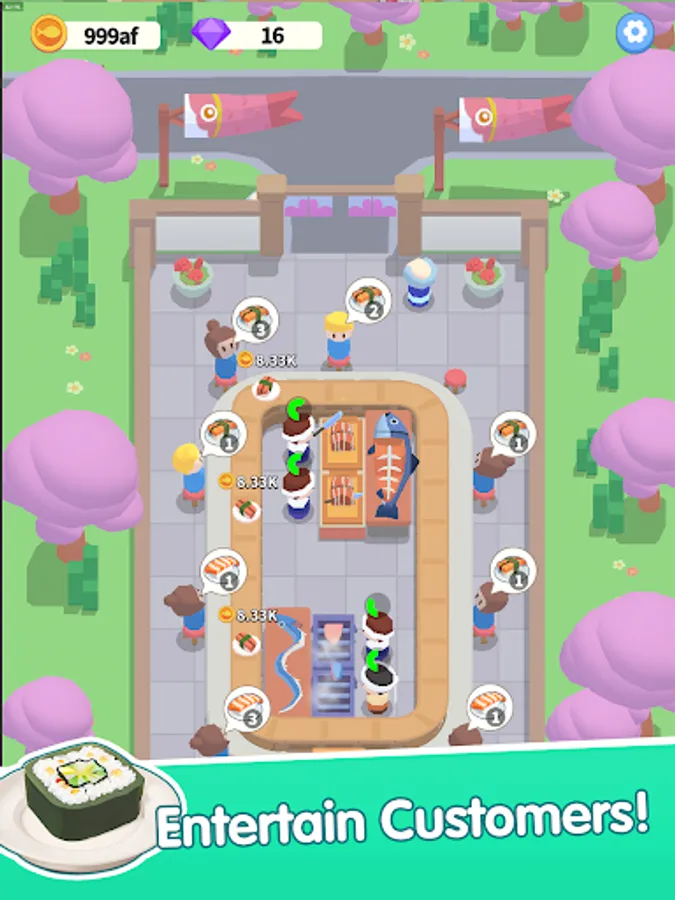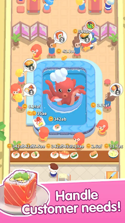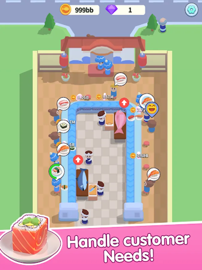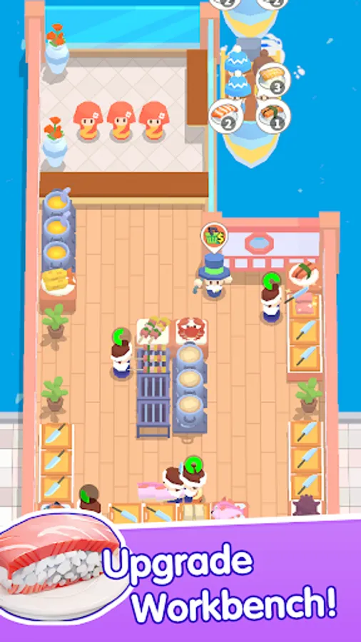 Welcome to Idle Sushi House, the paradise for sushi lovers! In this mobile game about sushi shop management, you can own your own sushi shop, make various fresh and delicious sushi, meet the needs of customers, earn income, expand your business, and become a sushi master!