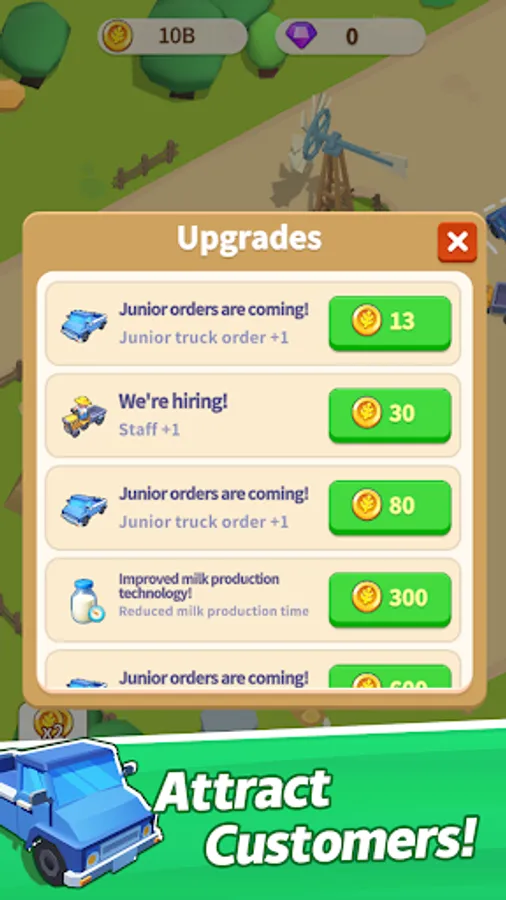 Here, you will get an unprecedented idle simulation management experience. Build and expand farms, fulfill truck orders, open new farms and become a world-famous farm tycoon.
