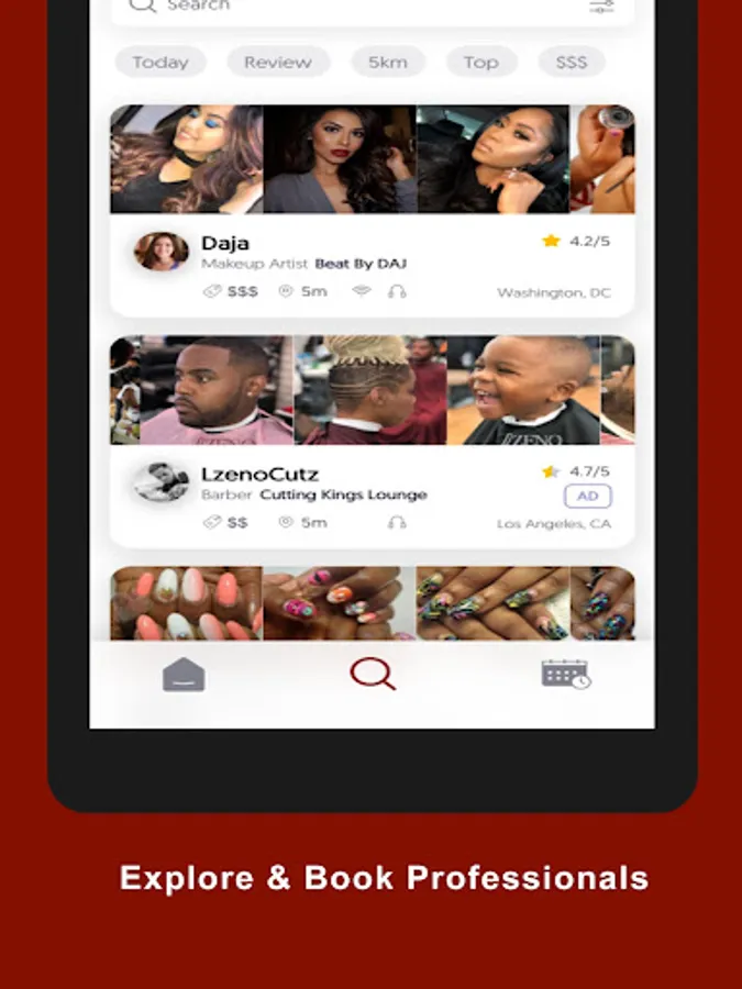 Taper is a resource for customers to discover and book barber and beauty professionals at their fingertips. Services can include Haircuts, Shaves, Treatments, Weaves, Braids, Pedicures, Manicures, Twists, Natural, Nails, Eyebrows, Lashes, Waxing and Makeup. Customers can: