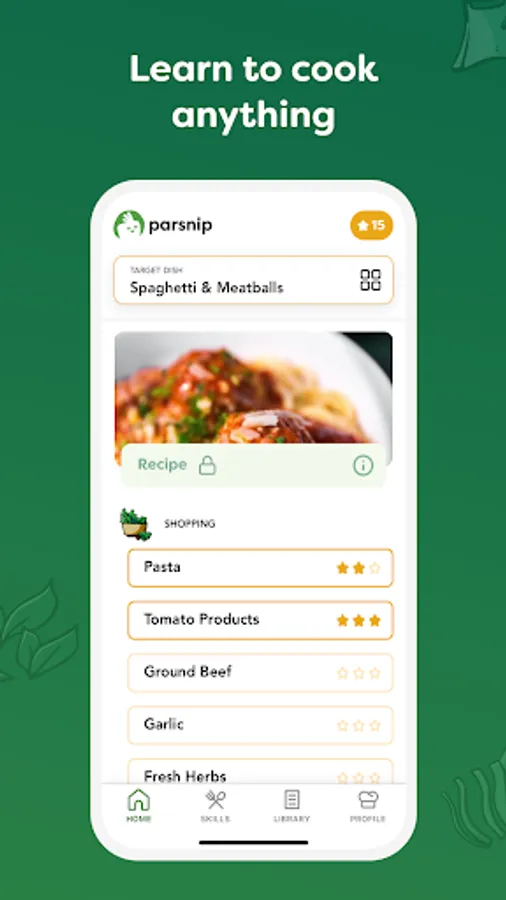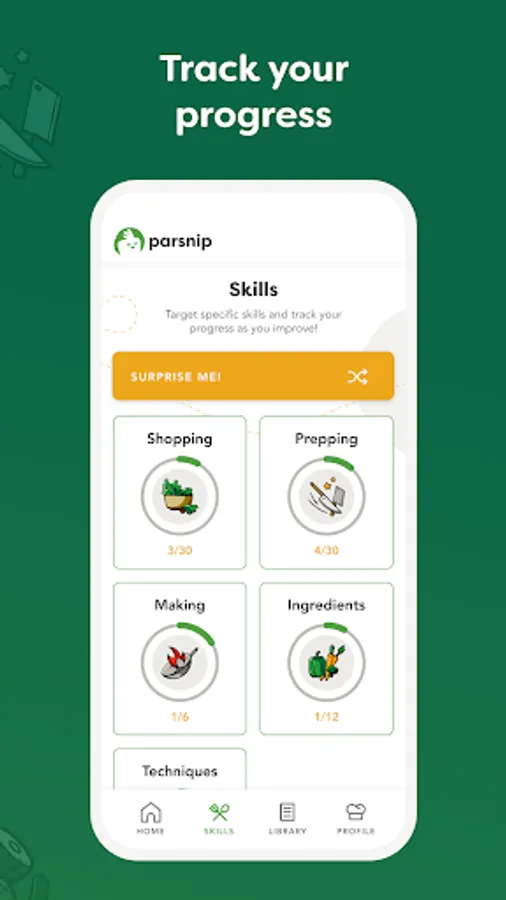 Parsnip is THE destination for learning to cook. On Parsnip, complex cooking expertise is broken down into quick, bite-size quizzes. All you have to do is play, learn the dishes that interest you, skip what doesn’t, and you’ll cook like a chef before you know it. From your morning coffee to waiting in line at the grocery store, Parsnip helps you level up your cooking skills.