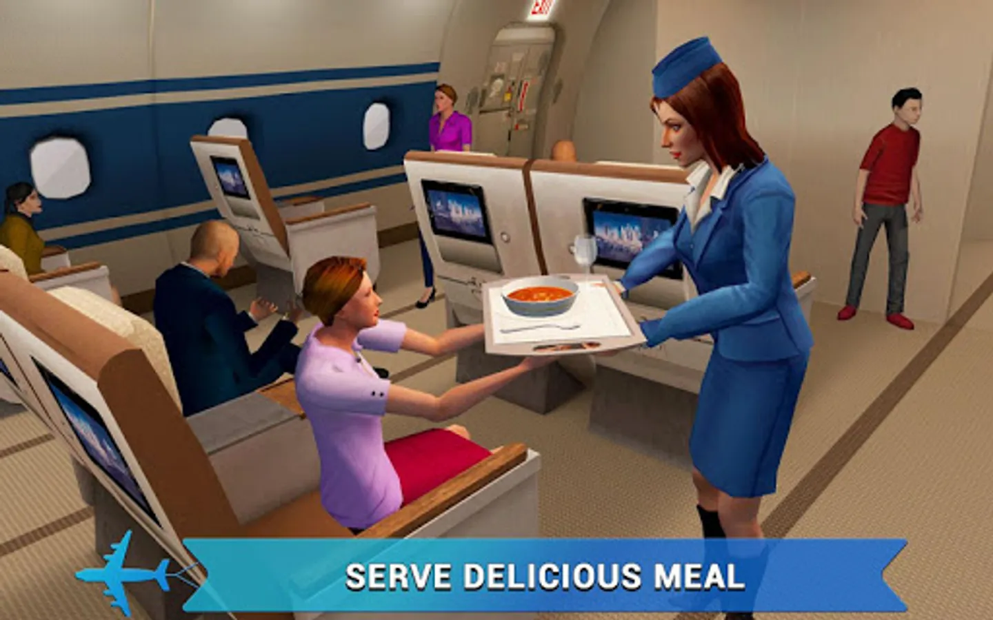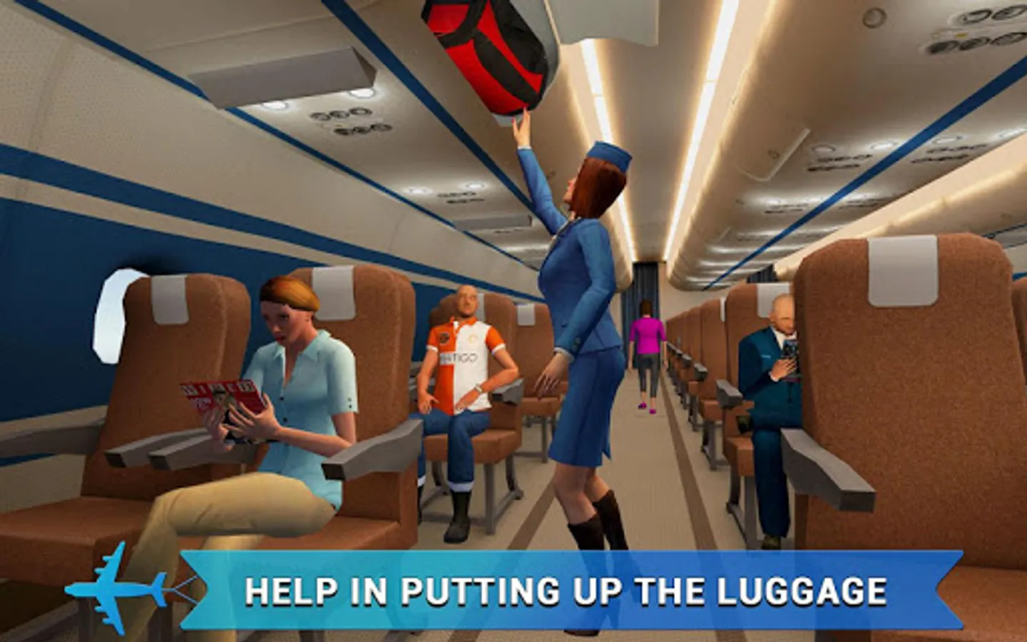 Being a stewardess is not easy! Whether it be the window or aisle seat, rear or front, be there for your passengers from takeoff to landing! Always be helpful and remind people of safety instructions in the cabin. Be friendly, courteous, and accommodating. This 3D simulation game features a realistic flying/airplane experience. Immerse yourself in the world of travel and step into a classy flight attendant’s shoes (and an elegant outfit). You got the look, the scene, and now--it’s time to carry out your duties!