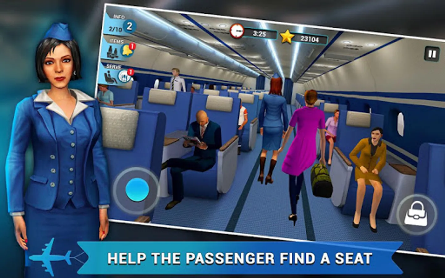 Ready for takeoff? This airplane adventure will take out of the atmosphere from start to finish! Play a flight attendant or airplane stewardess--it’s your first day on the job. Your priority is to keep both domestic and international passengers comfortable, happy, and safe! Make sure customers behave and don’t put anyone’s safety at risk. Micro-manage several airplane duties. Multi-tasking is your best friend! Welcome guests upon boarding and show them to their seats by checking their tickets; educate them about airplane procedures and rules by demonstrating with life vests and oxygen masks; walk the aisles and check on any disobedient customers; listen to the pilot’s instructions from the cockpit; be accomodating by providing food and drinks, adjusting the air conditioner, escorting passengers to the bathroom, and aiding them in retrieving their carry-ons or suitcases from the trunks. Travel the whole world and enjoy a fabulous flight attendant’s lifestyle!