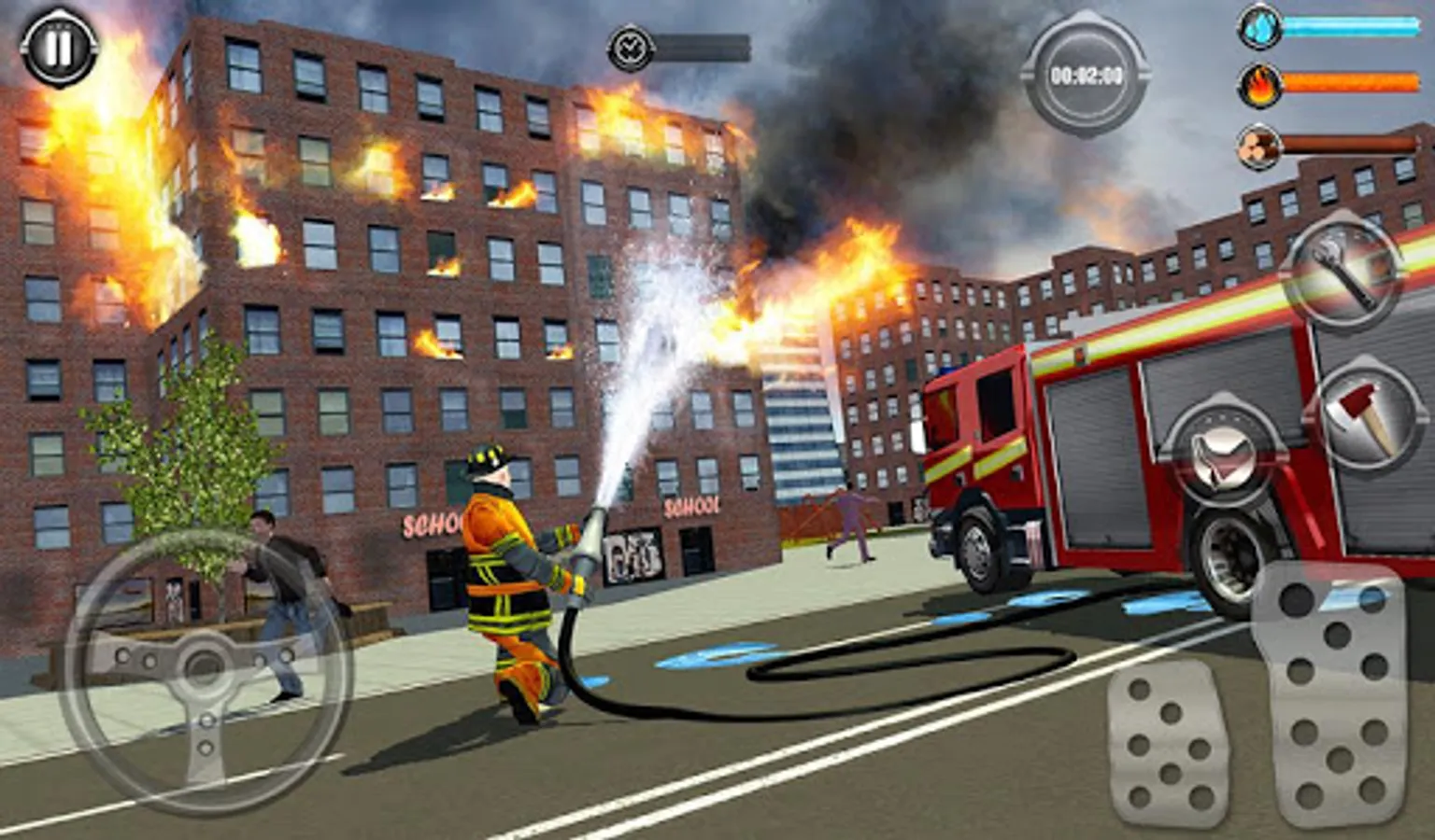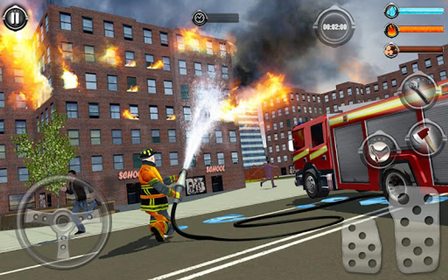 On a bright sunny day in New York City, you encounter a building in flames! You are a courageous firefighter, and your duty is to rescue your fellow New Yorkers. Are you up for the challenge?! Grab your hose and slap on your combat boots; fires don’t wait for anybody. NY City FireFighter includes brigade truck driving, parking, and action play. Race through city roads with your team in a quick fashion. Evade traffic and keep pedestrians safe. Use your parking skills to avoid clashing with city vehicles. Next, embark on several rescue missions in different locations. There will be shopping malls, banks, schools, office buildings, and even hospitals to rescue!