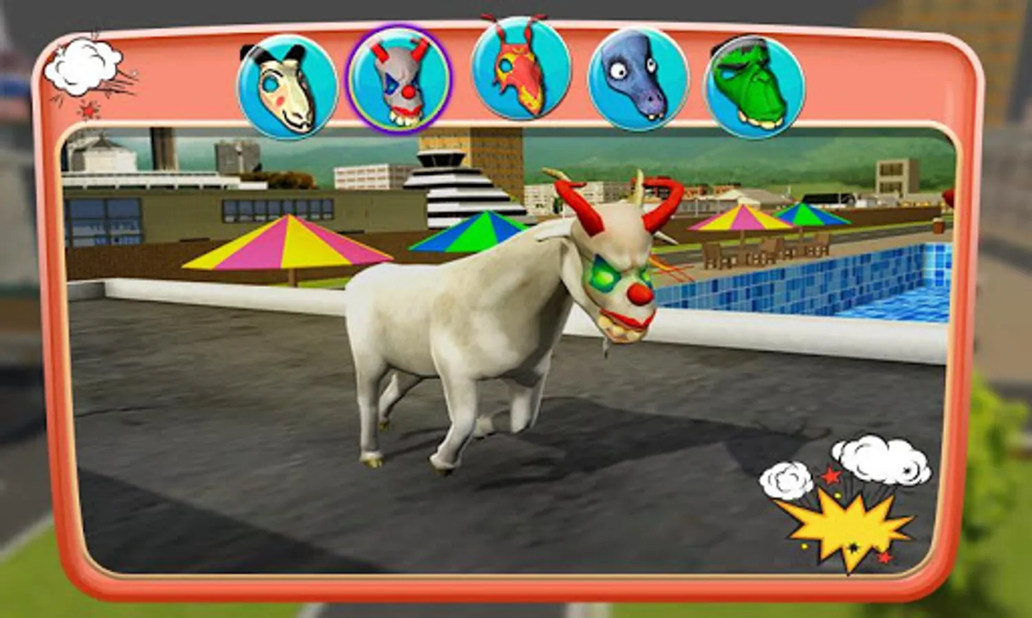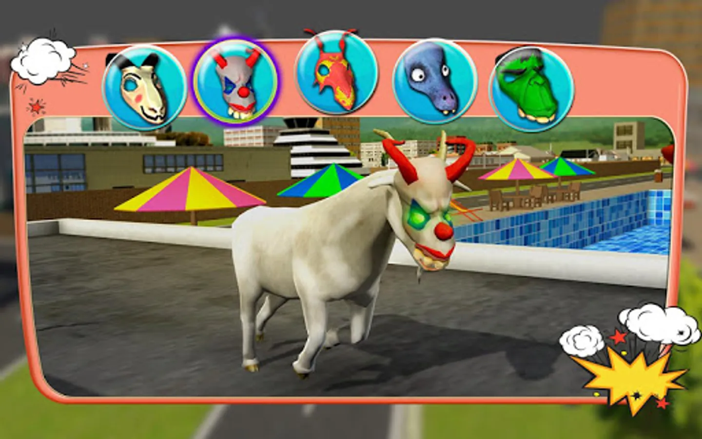 Choose from several party and carnival masks (like the Clown Mask) to become Scary Goat and scare people out of their wits! Each different activity or mission will own you points. Exercise to increase your stamina and health for ultimate attacks.