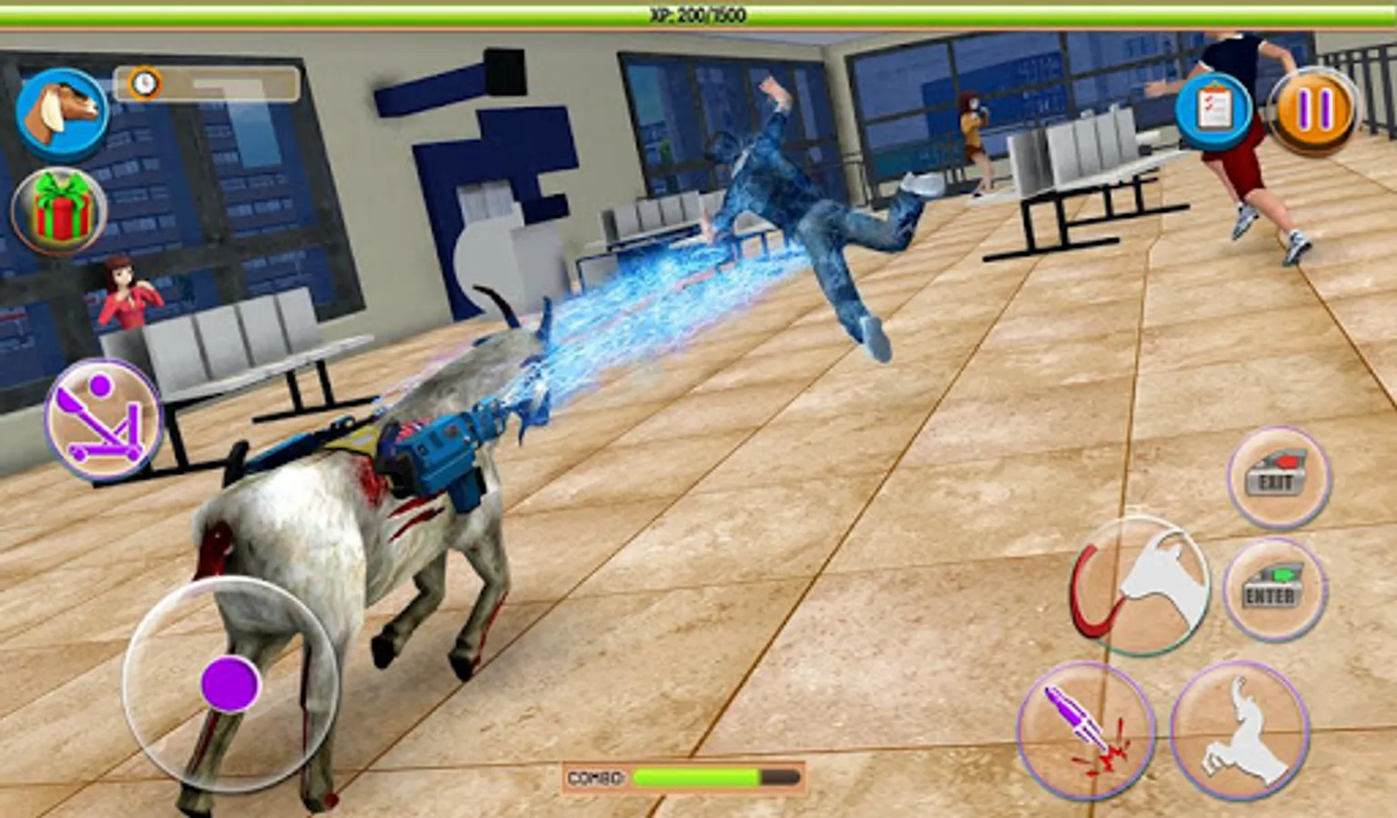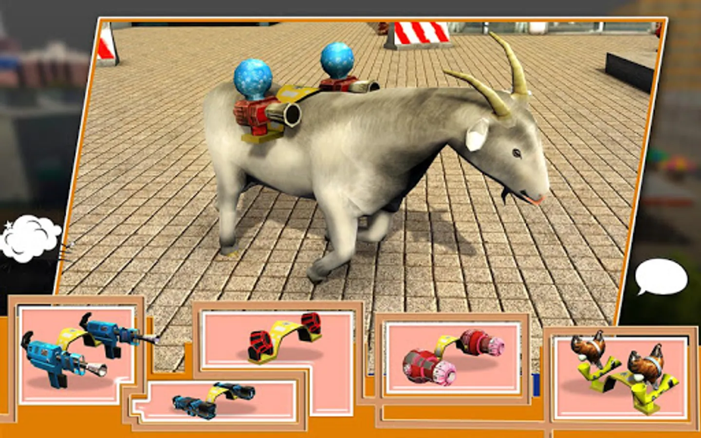 Scary Goat is on a mission to cause destruction! Scamper and jump around New York City to take revenge on pedestrians. Use the special gun feature (like the Egg and Dung Gun) to blast people! There’s a variety from which you can choose. Run in a rampage and cause some damage to vehicles and people’s precious homes! Break into office buildings, stores, malls, and more. Use your long tongue as a grapple to reel in people, cars. and trucks. Catch them before they run away!