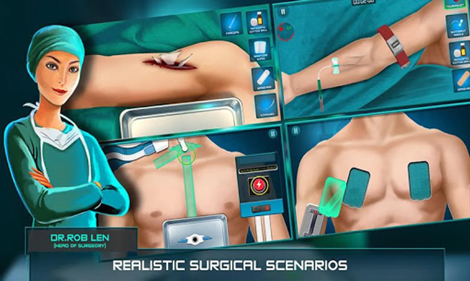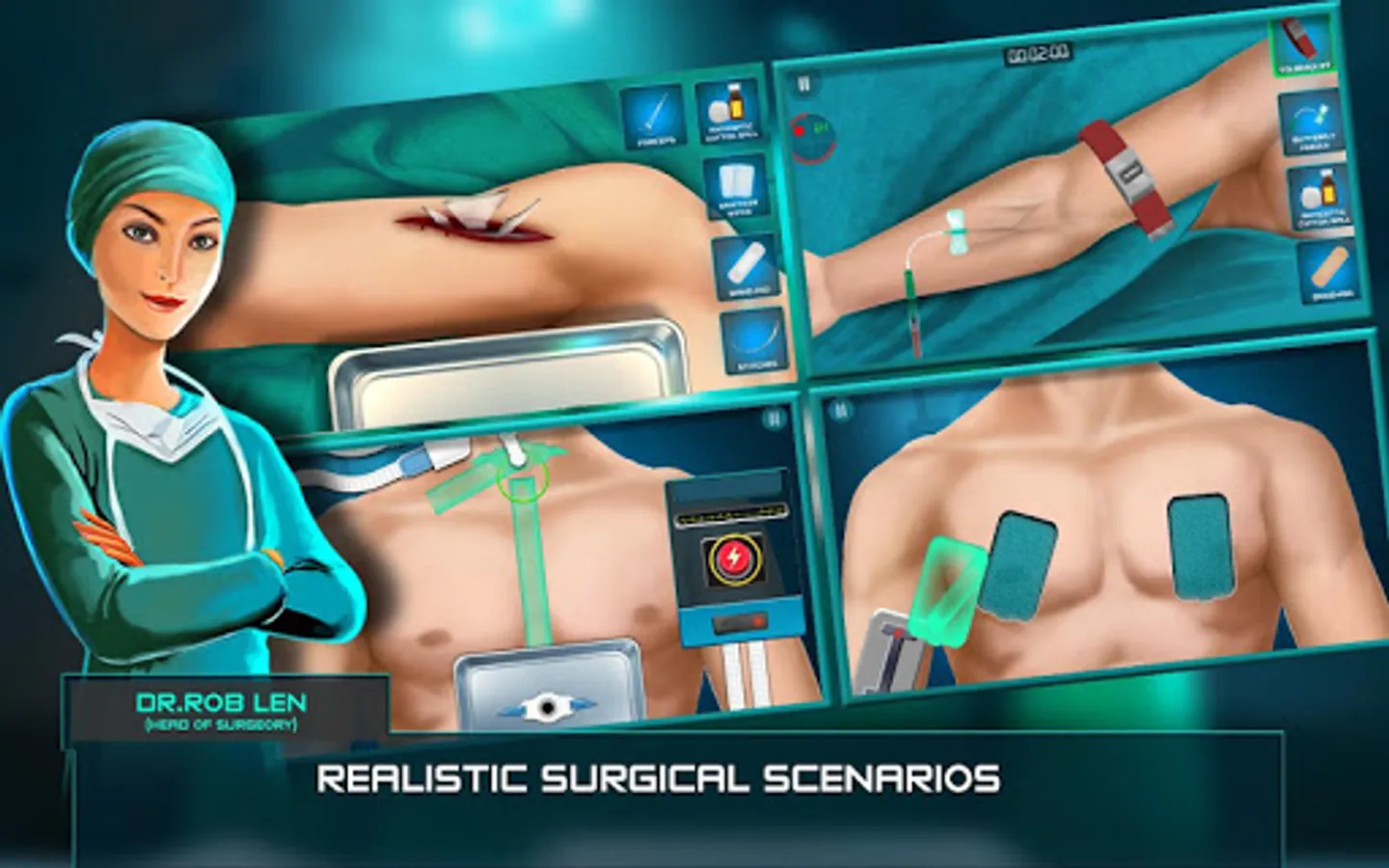 In addition to your large array of tools, operate to alleviate different unique injuries. Cuts, scrapes, and fractures from car accidents, cooking, glass, or disease. Deal with different body parts such as broken arms and legs, nose and back surgeries--and more! Use high-tech professional equipment like defibrillators and computers. Test your skills as a professional surgeon; treat patients and make them healthy and happy again! Perform challenging tasks every time. People’s lives are in your hands! The nurses and patients are all counting on you!