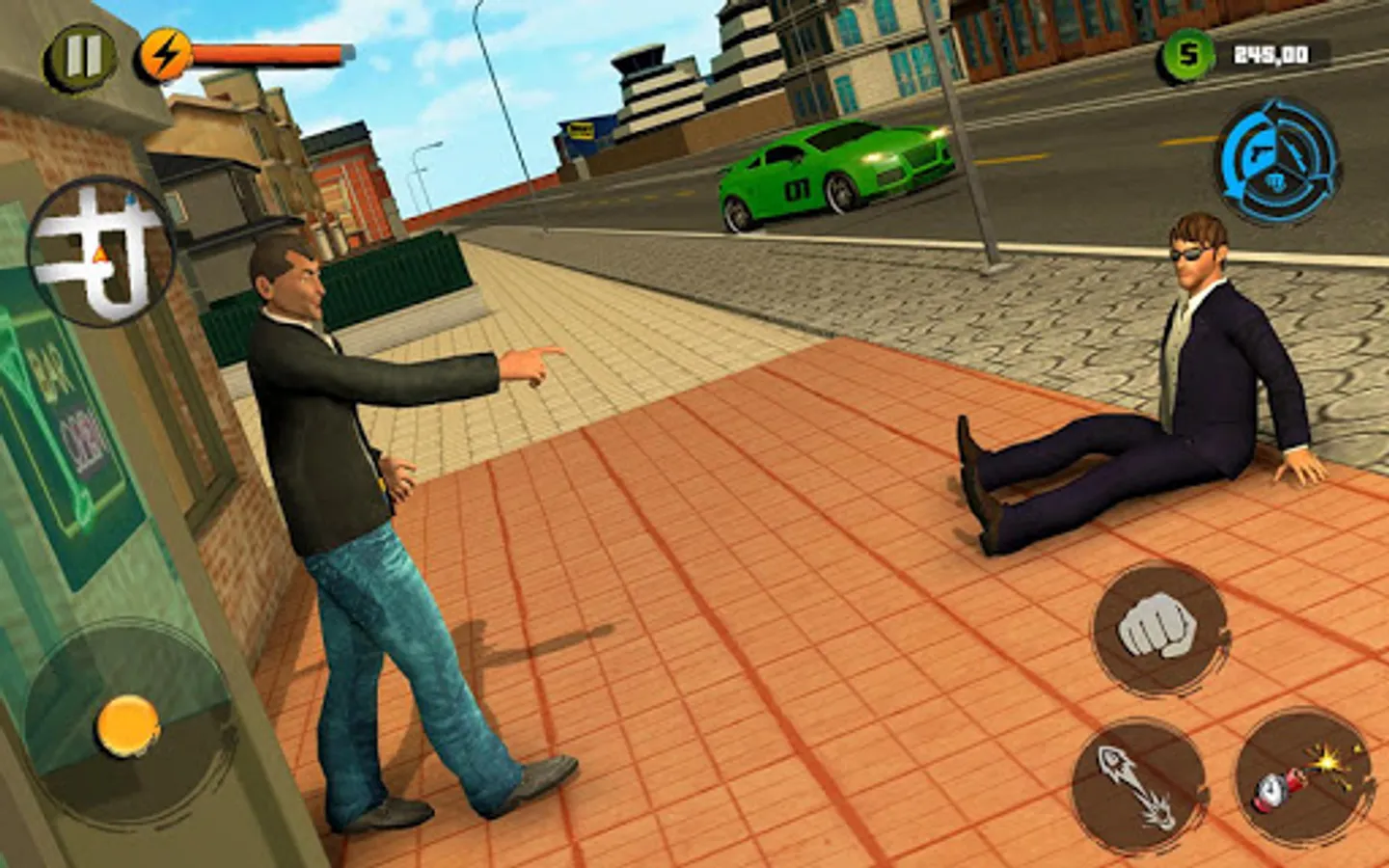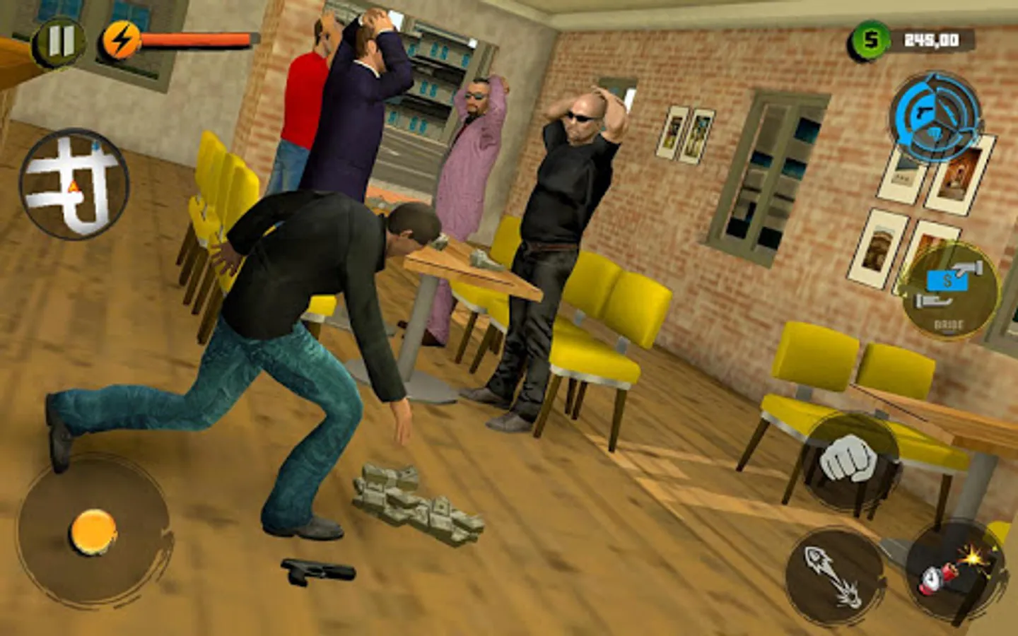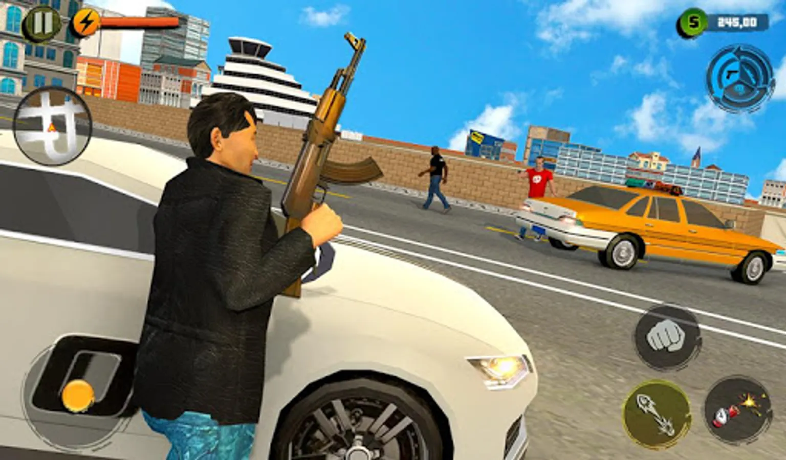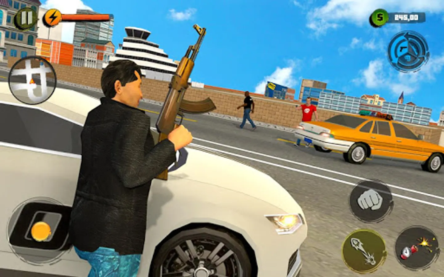 Your gang controls the politicians and the police of the city. You run a network of underground gangsters and possess the largest stockpile of guns and cash. But a storm is stirring...your allies are rebelling against you! Take your city back by chasing other thugs and criminals through alleys and roads. Enter hidden meeting places and catch them by surprise. Use different attack combos to protect yourself, like Super Punch, and use an AK-47 or other weapons. Target, aim, shoot, and run! Chase and steal cars, defend your crew, rob banks, fight cops who get in your way, and work with your henchmen. Make sure your opponents go to prison so you can win back your town! Explore a grimey and realistic urban environment with city sounds and visuals. Choose your favorite gangster character to look intimidating.