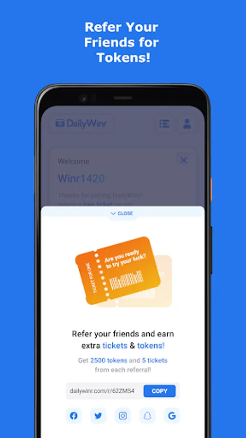Refer your friends to DailyWinr with your referral code to get free tokens!