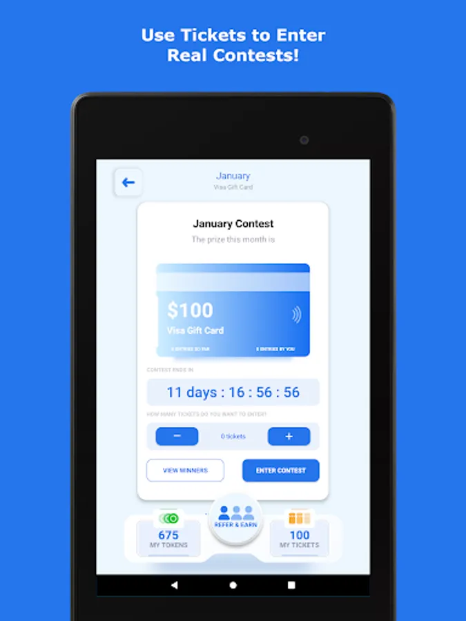 Use your golden tickets to enter a variety of contests for a chance to win real prizes!