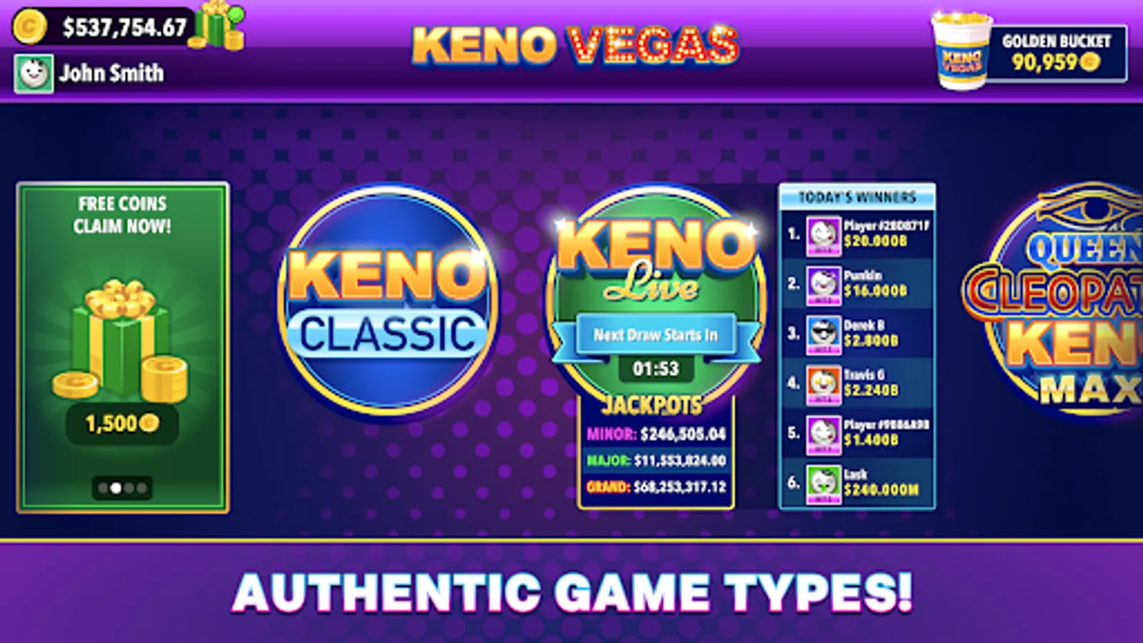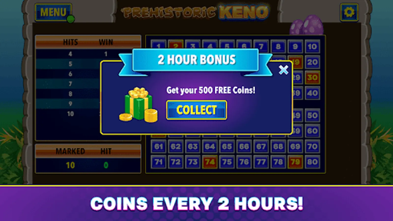 Play keno anytime, anywhere - just as you would in a Vegas casino. Download and play for free with bonuses every 2 hours and free daily Coins.