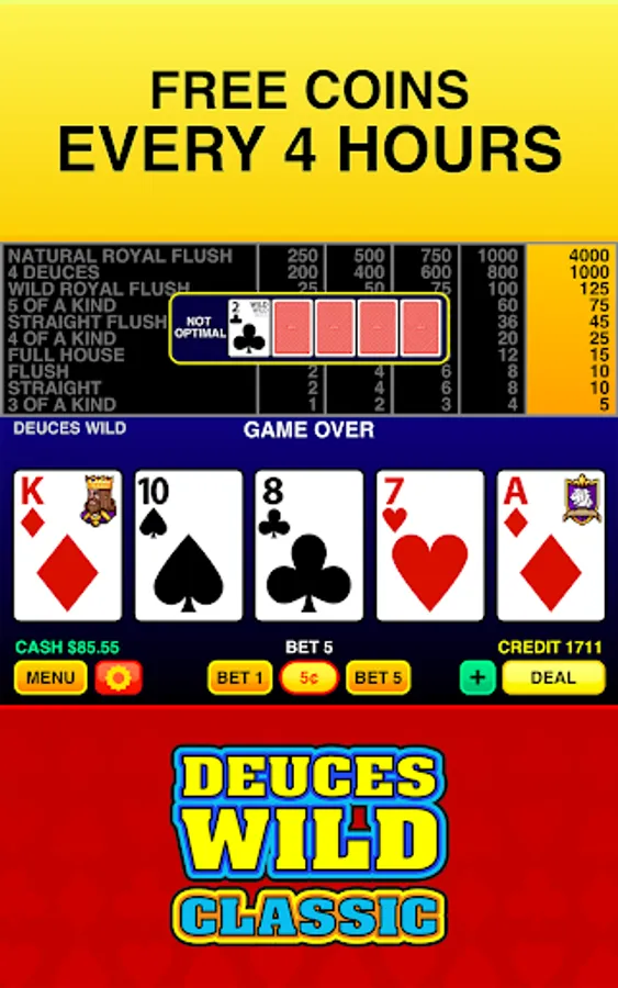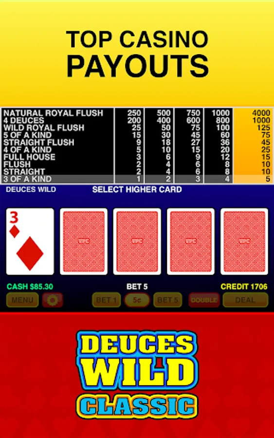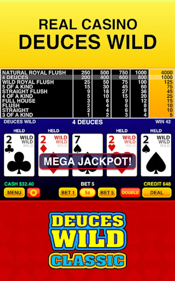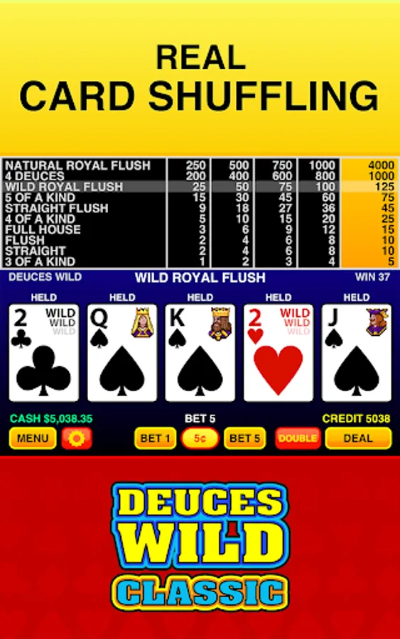 Deuces Wild Classic features the most authentic Deuces Wild video poker with real card shuffling, casino paytable, real dealing, skills trainer, and the full Las Vegas experience.