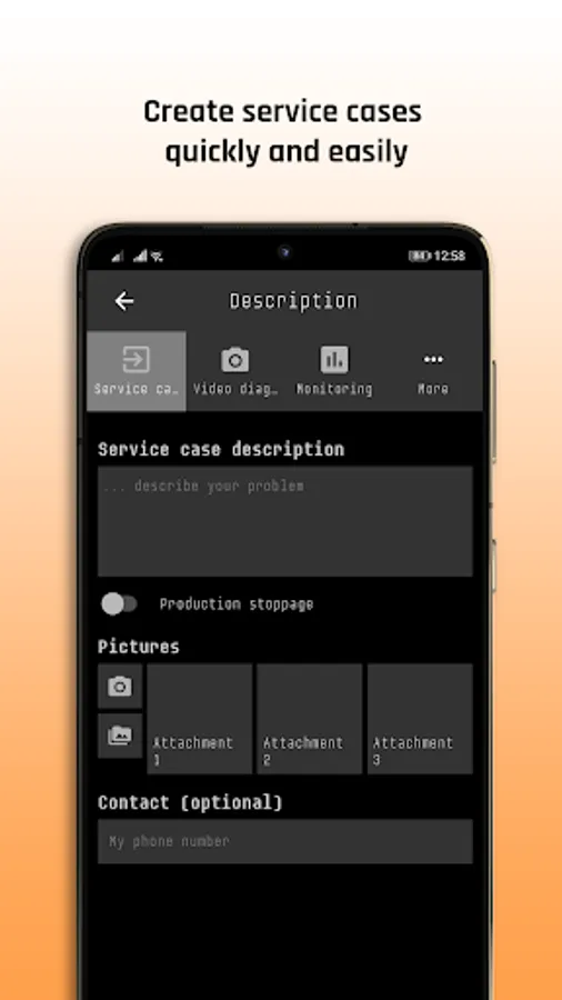 • Create service tickets with attached photos with just a few clicks. The service ticket is automatically directed to your attached service partner.